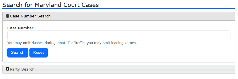 The official link for online searches is: https://casesearch.mdcourts.gov/casesearch
